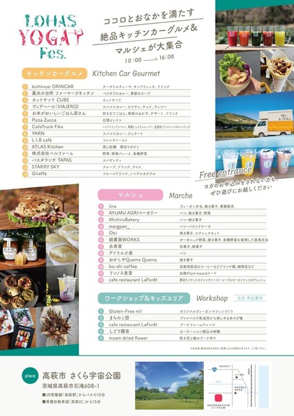 トークショーなどが受講でき、体に優しいメニューを提供するキッチンカーやマルシェにLOHASワークショ