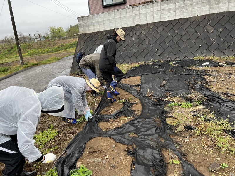 参加者さんは全員よいおやさいのビブスを着て作業します。参加メンバーがわかる上に道路などからも活動していることがわかり、一体感が生まれます。