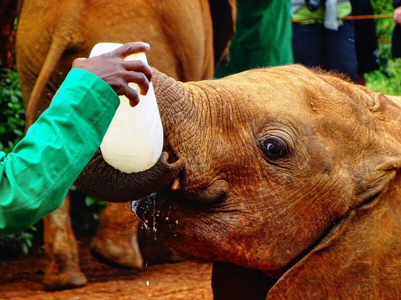 午前、象とサイの孤児院・シェルドリック動物個人訪問・見学