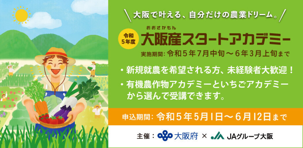 - 大阪で農業ドリームを叶える!「大阪産(もん)スタートアカデミー」研修生募集!