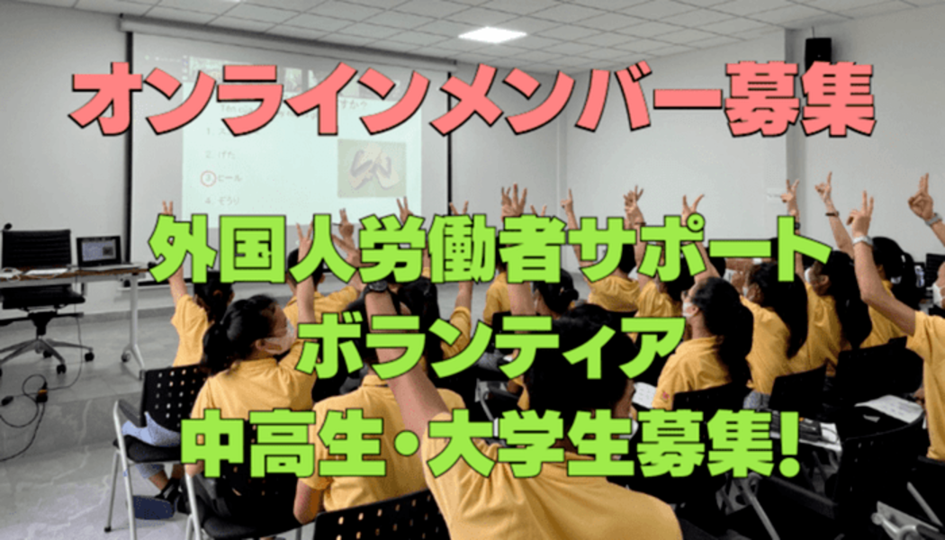中学生・高校生・大学生のメンバーを募集しています。日本語教室や国際交流を通して、技能実習生・留学生など日本で働く外国人をサポートする活動を行っています。5月28日に、オンラインでの説明会を実施します。