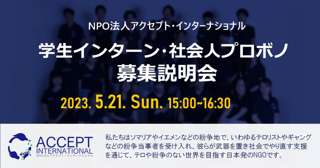 この募集の受入法人「NPO法人アクセプト・インターナショナル」をフォローして、