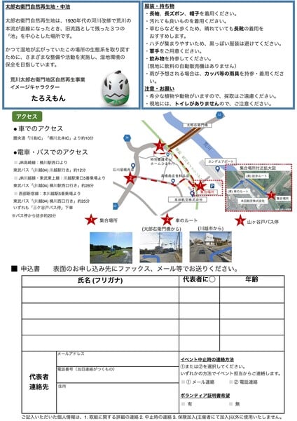 太郎右衛門自然再生地にて、荒川流域の湿地の保全活動を体験できるイベントを開催します。