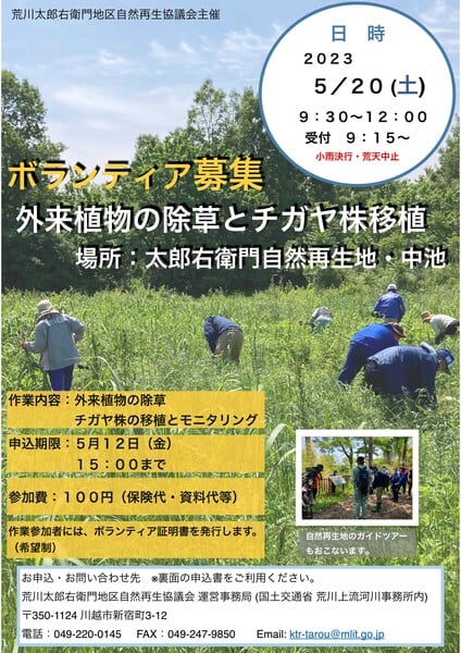 この募集の受入団体「荒川太郎右衛門地区自然再生協議会」をフォローして、