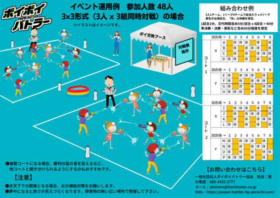 ※大会で使用する水鉄砲は運営側で用意しますが、参加者の方が水鉄砲をご持参頂いてもOKとしています。