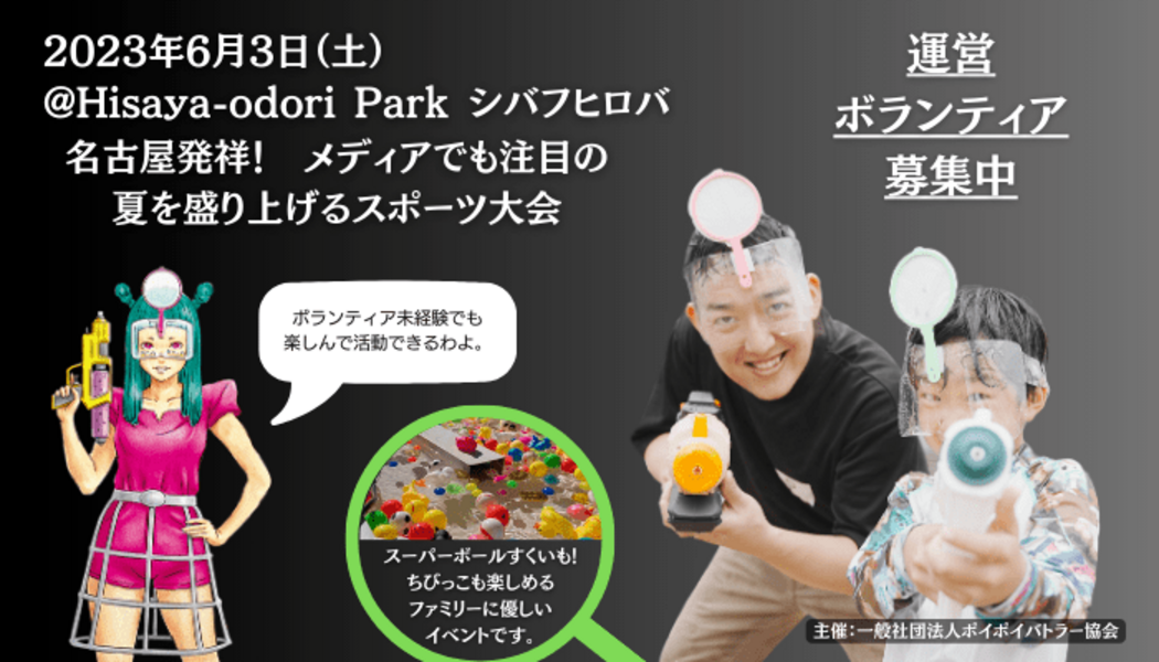 名古屋の中心地「Hisaya-odori Park」で開催する水鉄砲対戦ポイポイバトラー大会の運営ボランティアを募集します!子どもから大人まで参加する話題のスポーツ大会運営が経験できます!