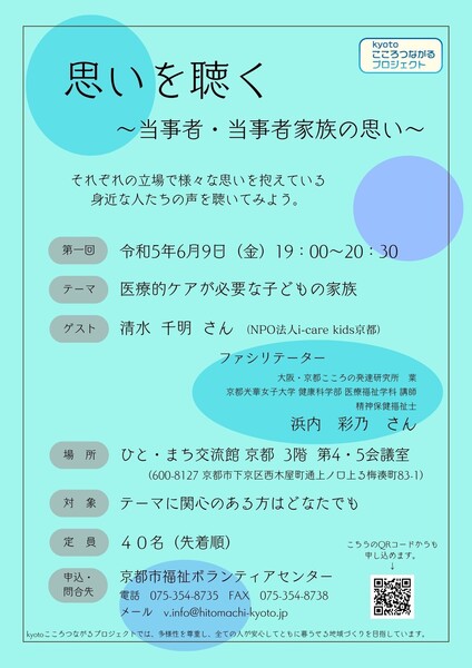 NPO法人i-care kids京都の清水千明さんに当事者家族の思いを聴きます。