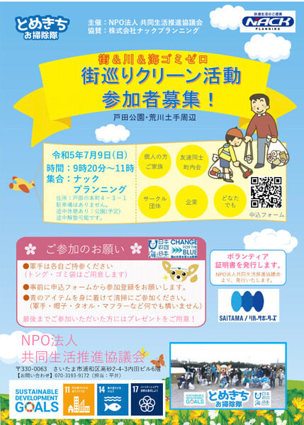 - 6/11(日)・7/9(日)【本部運営ボランティア募集】戸田市☆とめきちお掃除隊