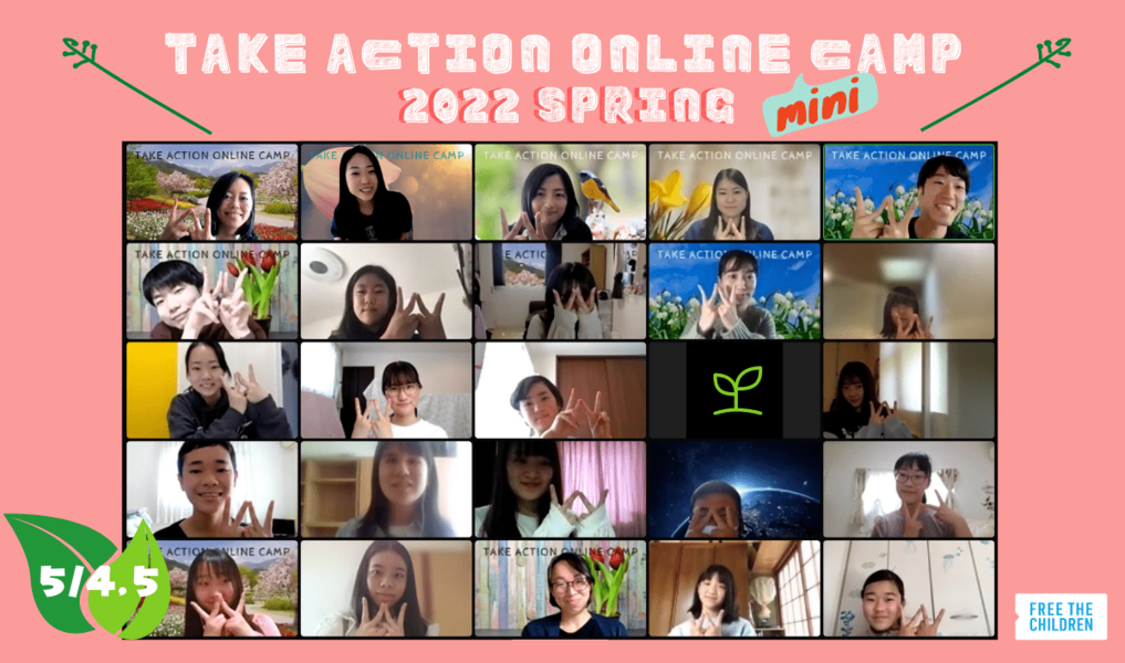 フリー・ザ・チルドレンを設立したのは、12才の少年。そして、これまでもたくさんの若者がアクションを起こしてきました。テイク・アクション・キャンプは、そんな"アクション"を起こす担い手となるための機会です。オンライン・キャンプでは、家でできるミニアクションに挑戦します!社会問題について学ぶだけでなく、「自分に何ができるか」を繰り返し考えるので、あなたらしいアクションがきっと見つかるはず!