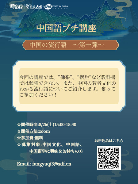 - 中国語無料講座 参加者募集 中国語を楽しむ 中国文化 中国ドラマ 中国留学