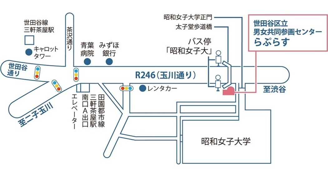 開催場所は昭和女子大学の隣でわかりやすい!世田谷区三軒茶屋駅近く(渋谷から急行隣駅)昭和女子大学隣の世田谷区の会場【男女共同参画センターらぷらす4階・第3〜第4研修室(世田谷区の会場で学生さんも安心です。) |
