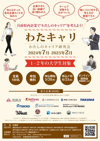 兵庫県内36大学および、近隣他府県の大学に在籍する1・2年生の学生100名程度 |