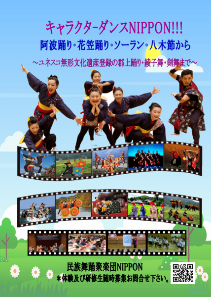 阿波踊り、ソーラン、花笠踊り、沖縄舞踊まで、全国のPeopleDanceをCoolJapanをテーマに踊るDanceCompany。研究生を募集。