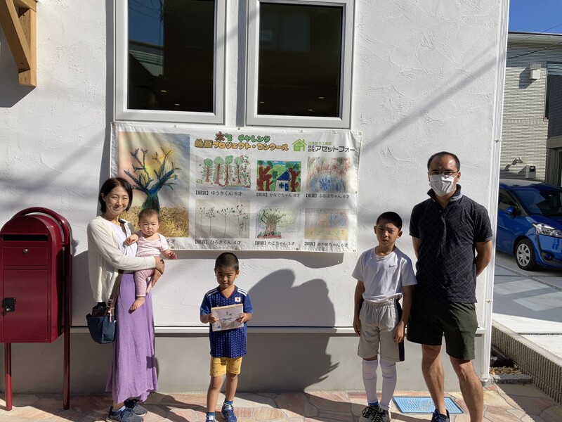 SDGsの木を育て森林の循環つくる。そのために子ども達に、木をテーマに絵を書いて頂き、工務店、木材会社、神社などお披露式を行います。また参加賞で障害者アーティスト作画による絵本をプレゼントしました。