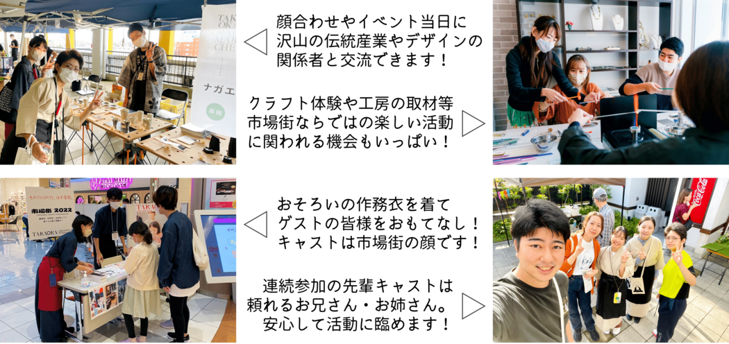 ▷市場街には職人さんをはじめ、デザイナーさんなどまちづくりを担うたくさんの人たちが関わっています。その一員としてイベント作りに携わる中で、幅広い人脈をつくることができます!