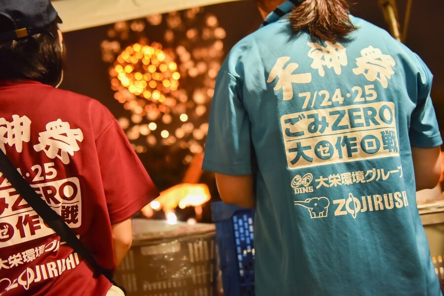 天神祭ごみゼロ大作戦では、大阪府内の廃棄物の課題に取り組む市民団体やNPO、行政や事業者などと実行委員会を立ち上げ、ごみ減量を目標に取り組みをスタートしました。
