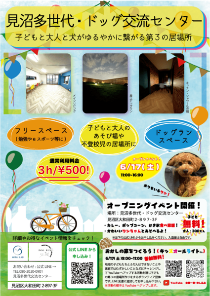6/17に見沼多世代・ドッグ交流センターがオープンします!オープニングイベントとしてカレーやかき氷、ポップコーンの無料配布をします。お手伝いしてくださる方を募集いたします。