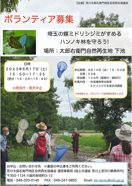 この募集の受入団体「荒川太郎右衛門地区自然再生協議会」をフォローして、