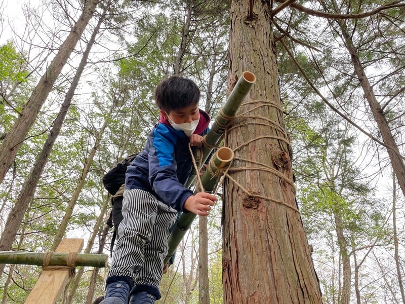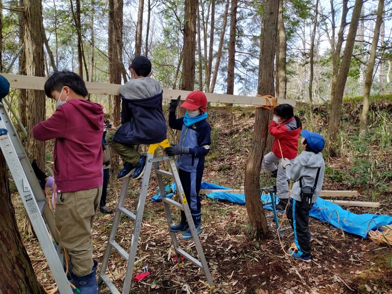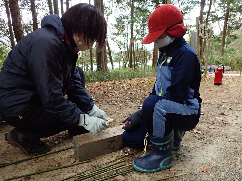 ロープワークは苦手と言っていた子どもたちも、自分なりの方法でロープを結べるようになっていて、