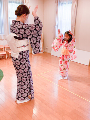 さらに「体操教室」では、ボール運動や駆け足、マット運動などを通して、子ども達の運動能力を育み、「日本舞踊教室」では日本舞踊の踊りにとどまらず、着物や三味線の音、お扇子の扱い方など、様々な日本の文化に触れて教養を身につける機会を提供しています。
