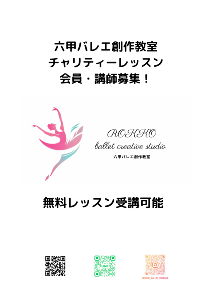 バレエ・ダンス講師募集!六甲でチャリティーレッスンを開講。プロ・アマチュア問わず、優しく情熱的な方大歓迎。あなたの優しさと情熱が、人々の心に響くバレエの光となります。一緒に素敵な夢を叶えましょう