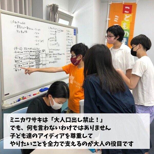 ・「こどものまちミニカワサキ」は、子ども達が主役です。会議の進行も、企画も、子ども達で進めます。大人の顔色をうかがわず、やってみたいことを言ってみよう!子ども達が意見を出しやすい環境を、大人スタッフが支えます。