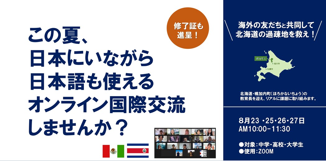 - (修了書有)【社会課題×オンライン国際交流】海外の友だちと北海道の過疎地を救え