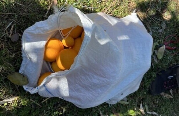午前の収穫作業だけでも八朔でいっぱいの袋とカゴが3~4個ありました。