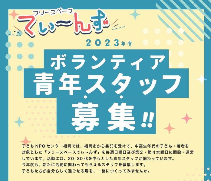 - 中高生の居場所づくりに関わるボランティアスタッフ募集!