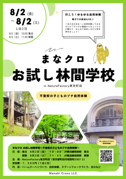 不登校の子どもたちの1泊2日の自然体験イベントのボランティアを募集します。