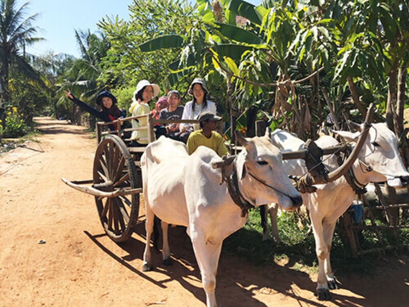 今回のスタディツアーでは、田舎の村を訪問!牛車やトラクター(※参加人数により異なる)に乗りながら町を回ったり伝統楽器の演奏を聴くなど、田舎の生活体験をします。国民のほとんどが農業を営むカンボジア。農村での生活を体験することは、カンボジアをより深く知るために必要な事です。