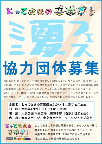 7月2日(日) とっておきの音楽祭inさかい当日ボランティア募集!