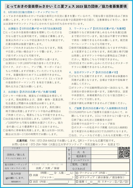 - 7月2日(日) とっておきの音楽祭inさかい当日ボランティア募集!