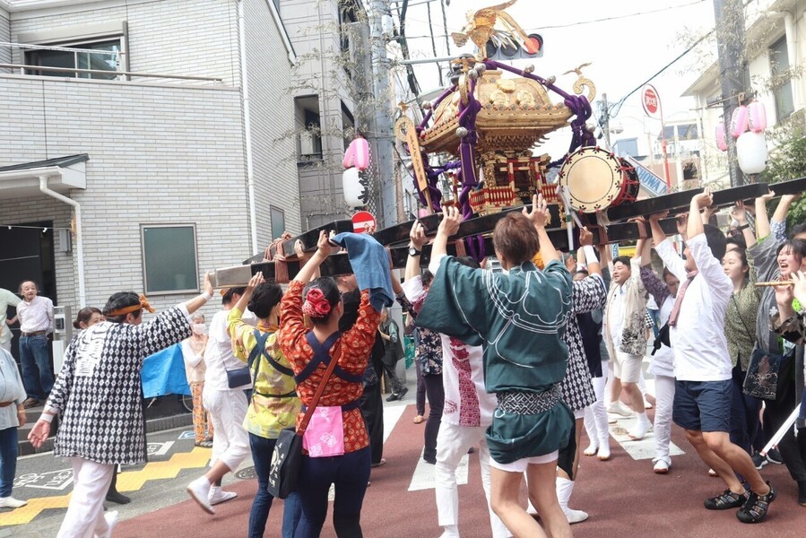 祭礼は品川区だけでも複数あり、6月の荏原神社・品川神社に始まり8月の鮫洲八幡神社、9月の立会川天祖諏訪神社、戸越八幡神社、蛇窪(上神明天祖)神社、五反田氷川神社、10月大井鹿島神社と続きます。