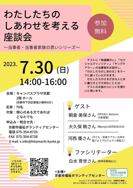 - 【7月30日(日)】わたしたちのしあわせを考える座談会~「思いを聴く」シリーズ~