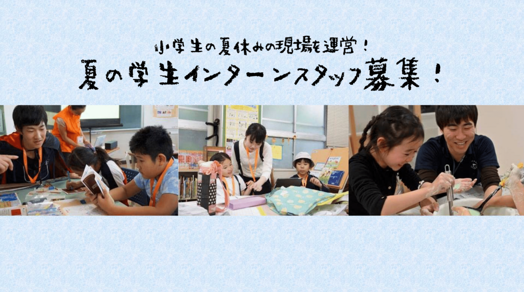ありのままを受け止めてもらえる、自分の「好き」が見つかる、そんなアフタースクール(公立小学校内)で、夏休みを思いっきり楽しむ小学生をボランティアと運営する、学生インターンを募集します!