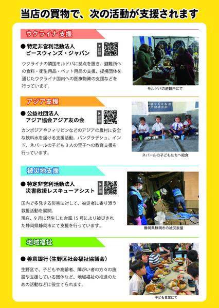 国際NGO団体のアジア協会アジア友の会の海外支援活動を資金面で応援していきます。