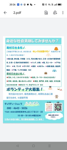おかげさまでたくさんのボランティアさんのご協力と、皆様からの不用品のご寄付をいただき、開店2年半を迎えました。皆様の善意で成り立っているチャリティーショップで、ボランティアしてみませんか?