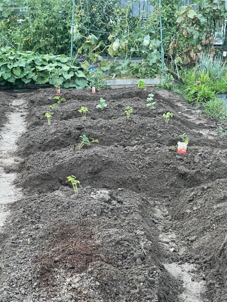 今は、夏野菜のトマト、なす、ピーマンなどが植えられています。