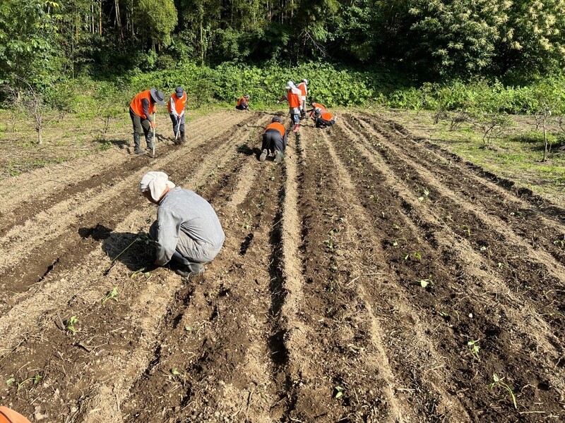 参加者さんは全員よいおやさいのビブスを着て作業します。参加メンバーがわかる上に道路などからも活動していることがわかり、一体感が生まれます。