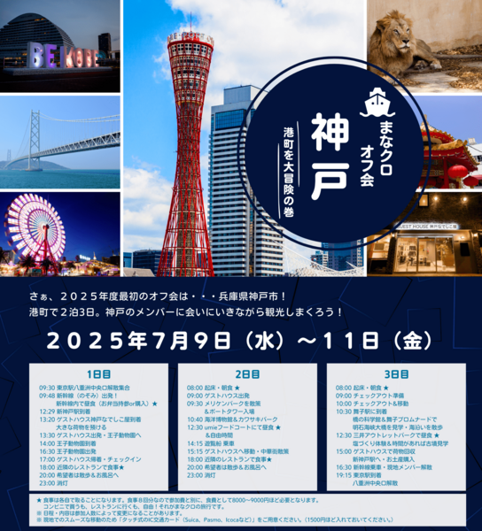 新神戸駅に集合し、2泊3日で兵庫県神戸市周辺を観光します。 |
