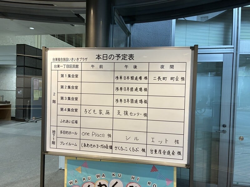 当日会場のいきいきプラザ(台東一丁目区民館)へ当会の問い合わせはしないようにお願いします。区の施設は台東区が業務委託した業者が管理しておりまして、そこに連絡をしても解決しません。