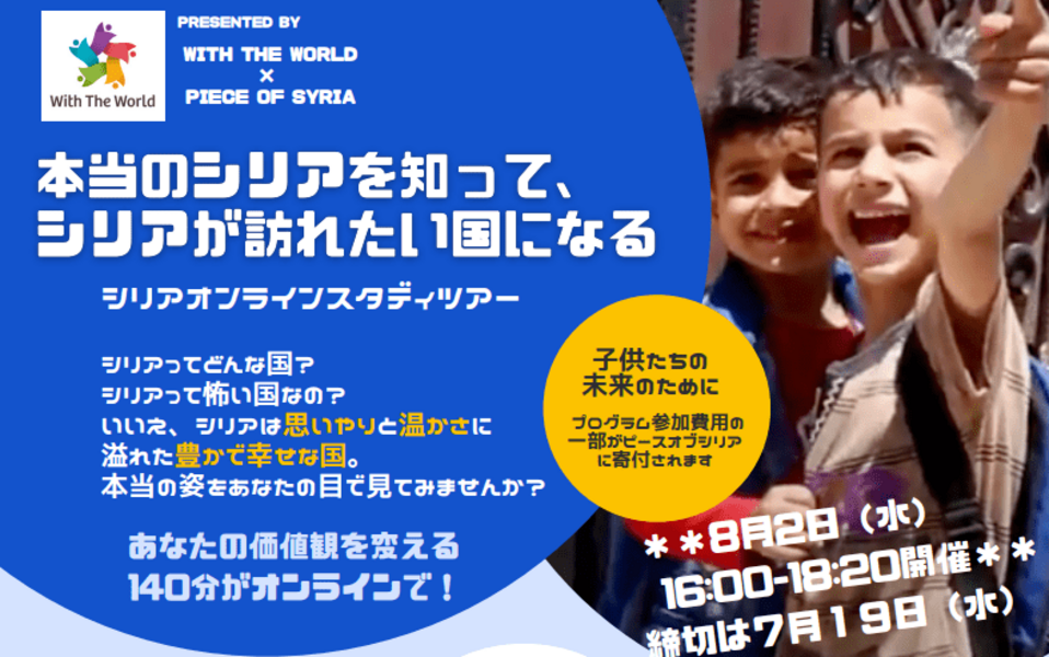 - シリアってどんな国?リアルを知れるオンラインスタディツアー8月2日(水)開催!