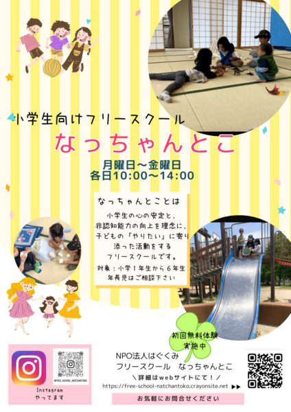 茨木市にあるフリースクールです。子どもたちの「やりたい」に寄り添うサポートをお願いします!大人も子どもも自信を持てる、自分を肯定できる、相手を認められる、そんな安心できる環境を一緒につくりましょう😊