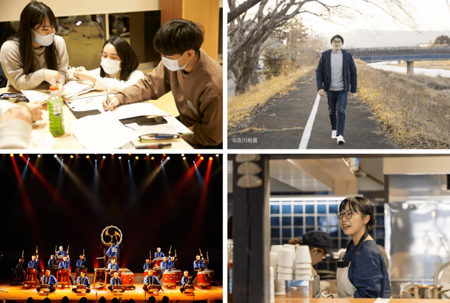 ゲストには、若者と地方を繋ぎ、若者が新たな発見や道を見つけるための挑戦をされている株式会社Oriaiの谷田川佐和さん、移住後も勤務内容はそのままで、得意なことを活かした地域貢献をされている都内IT会社勤務の千頭数也さん、和太鼓奏者としてまちの魅力の発信や「心の復興」に取り組まれている山木屋太鼓の遠藤元気さん、古民家カフェでまちの伝統や魅力を発信し、伝統と今と未来をつなぐ挑戦をされている秋風舎の志賀風夏さんにご登壇いただきます。