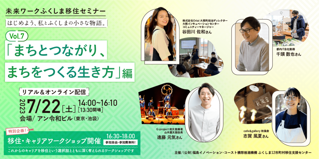 - 【東京開催】未来ワークふくしま移住セミナー『はじめよう、私とふくしまの小さな物語