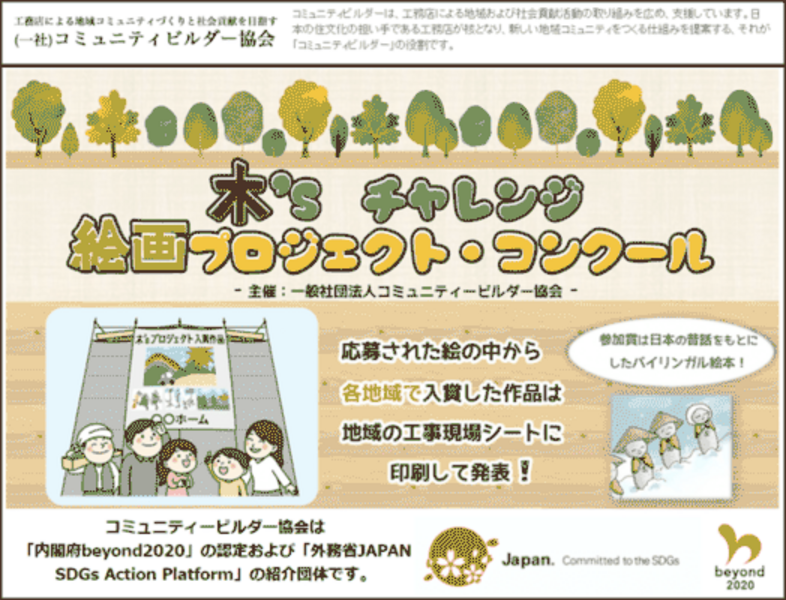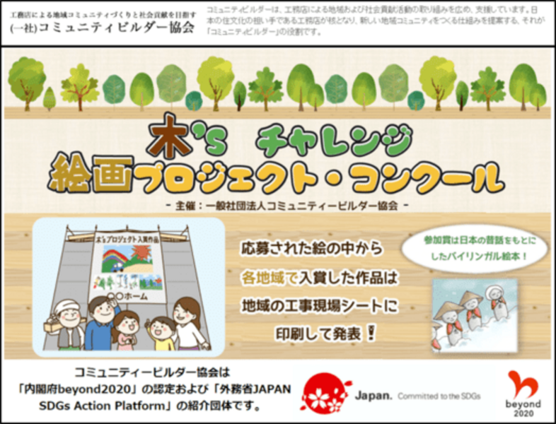 木をテーマにした子供向けの絵画コンクールを行ないます。このコンクールに協力をしてくれる建築会社さんや材木屋さんを紹介して頂いたり、それらの会社にオンラインインタビューをして頂ける方を募集します。