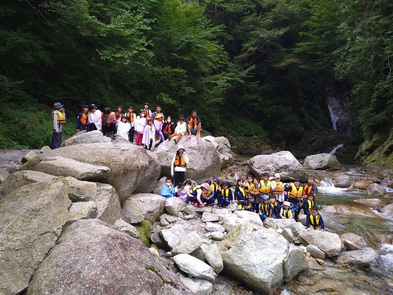 南アルプス甲斐駒ヶ岳のふもとを流れる清流尾白川渓谷で川遊びで楽しみます。参加者の小学生を見守りながら、暑い夏を涼しい渓谷で楽しみます。