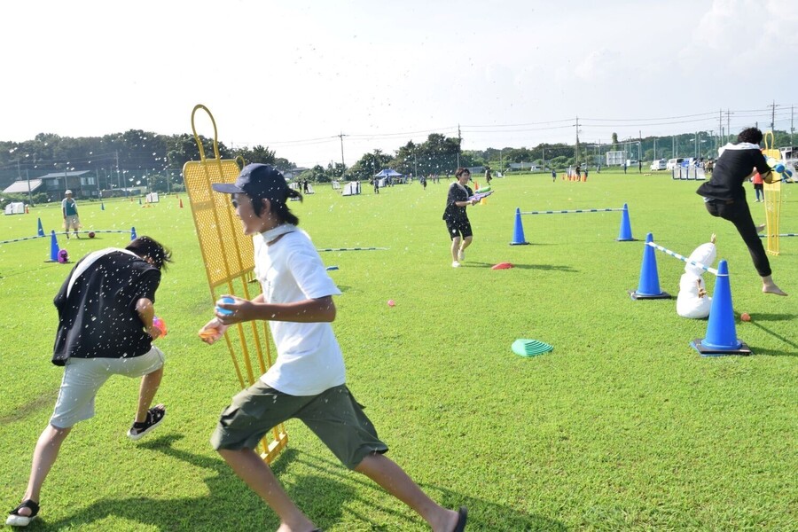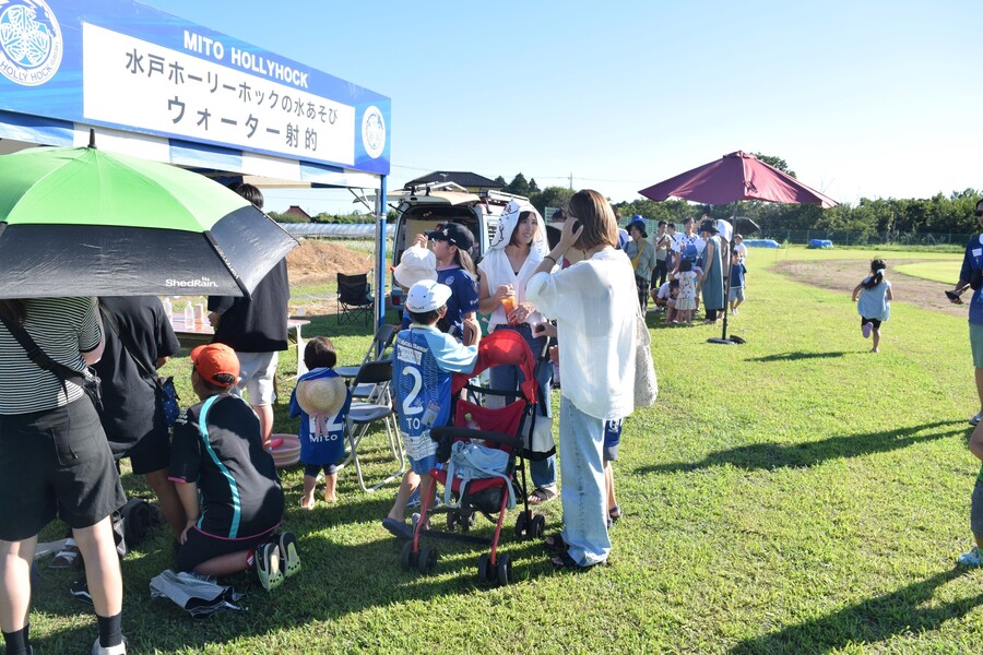 夏休みのど真ん中、暑さを吹き飛ばし試合開始までを楽しめるひとときにするため、広いグラウンドで水遊びをします!(選手も登場するかも?)