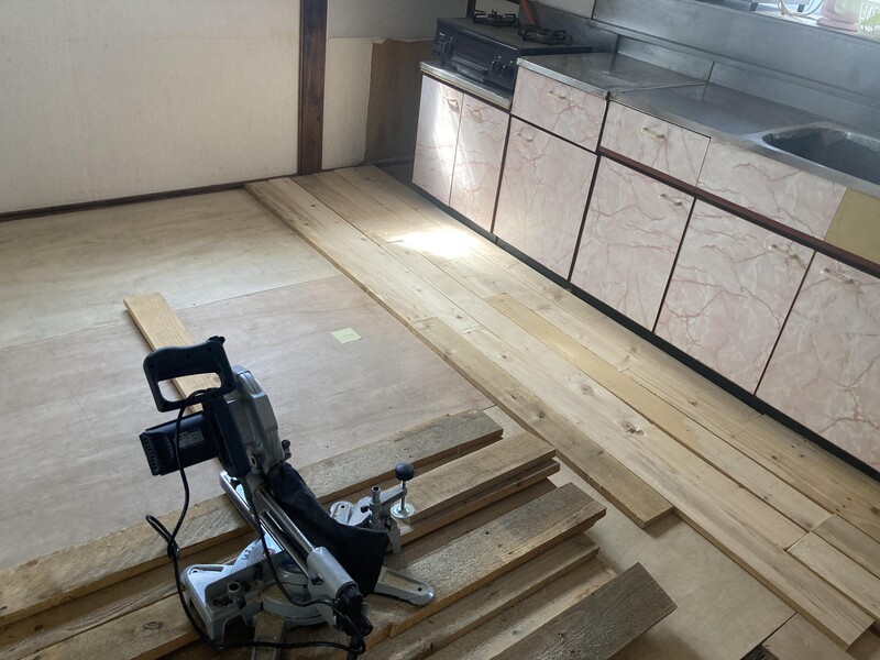今回、私たちは、第1弾のDIYとして、このFUKAYA CORN「Home」のシェアキッチンづくりを担当することになりました!建物自体古いので、床をはがすところからはじまり、床張りやクロス張り、棚の制作などの作業を3カ月のスケジュールで実施します。プロのアドバイスもいただきながらですが、基本的には利用者さんの要望やオーナーさんの意向を汲み取りつつ、自分たちの判断で場づくりします。